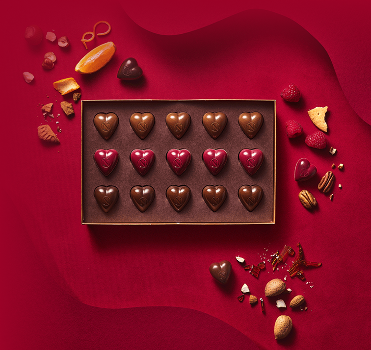Ovog su Valentinova Neuhausovi majstori čokolatijeri, u suradnji s chefom Thierryjem Theysom, nositeljem Michelinove zvjezdice, i njegovom suprugom Sofie Willemarck, stvorili tri čokolade u obliku srca nadahnute vlastitim odnosom. Svaka pralina nosi priču o harmoniji, nježnosti i zajedničkim trenucima – idealan poklon za izražavanje iskrenih emocija.