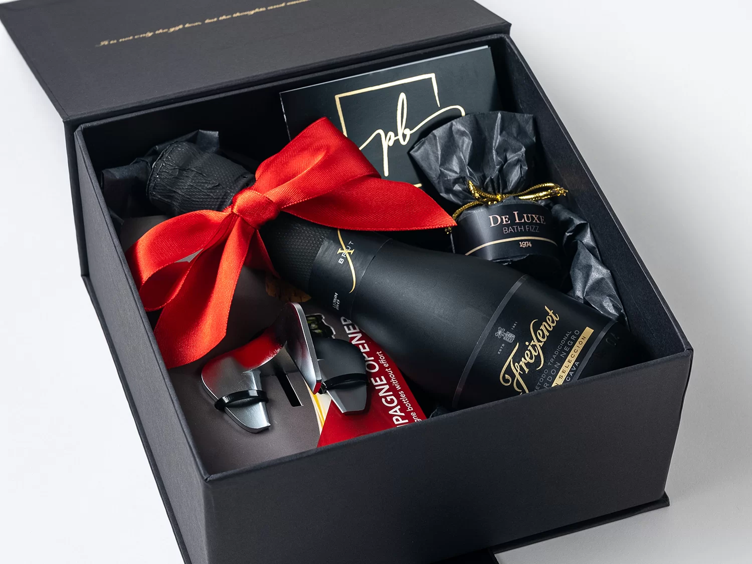 Spoj profinjenog pjenušca, delicija s crnim tartufom i elegantnih dodataka stvara bogato, uravnoteženo iskustvo koje govori jezikom kvalitete i užitka. Poklon koji ne traži dodatno objašnjenje — dovoljno je otvoriti kutiju i prepustiti se doživljaju.