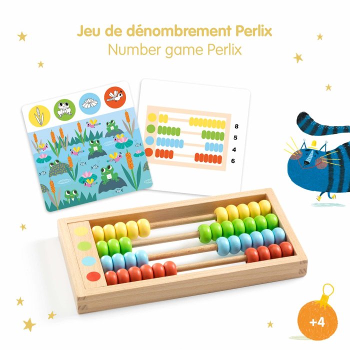 Abakus je svima poznati izum koji brojeve i količine čini zabavnima! Ovaj drveni abakus od Djeca tu zabavu dovodi na novu razinu uz kartice koje pokazuju sličice stvari koje treba izbrojati.