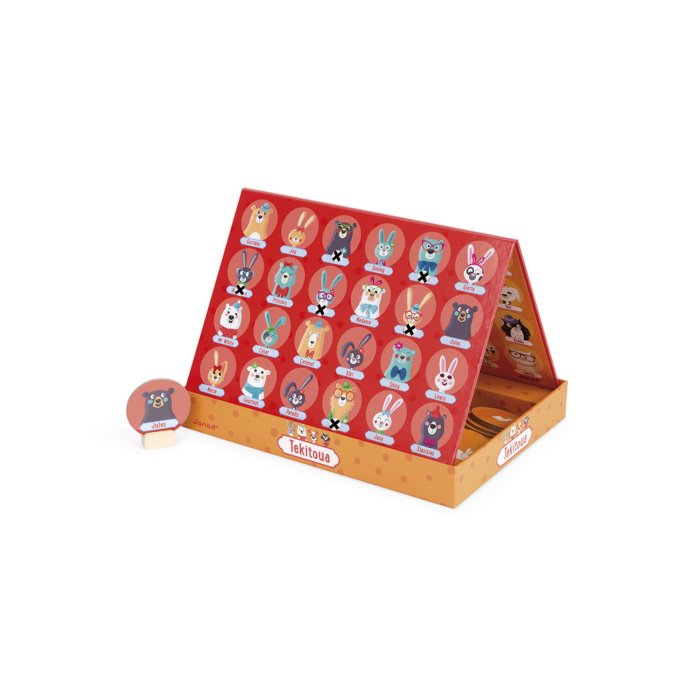 Predstavljamo vam zanimljivu stratešku igru – Pogodi tko? Ovo je igra za dva igrača, gdje jedan igrač drugom postavlja pitanja kako bi otkrio i uklonio jednu životinju za drugom križanjem na pladnju. Prvi igrač koji identificira životinju proglašava se pobjednikom! Igra dolazi s 48 premještajućih naljepnica i 48 kartica (24 po razini). Pravila igre su na francuskom, engleskom, njemačkom, španjolskom i talijanskom jeziku.